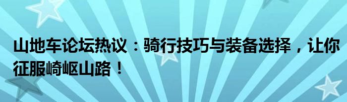 总之,山地车论坛是一个骑行爱好者们交流心得、分享经验的好去处。在这里,你可以学到更多骑行技巧,了解装备选择,以及征服崎岖山路的经验。希望你在未来的山地骑行中取得更好的表现和体验!