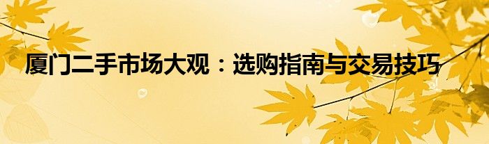 厦门二手市场大观:选购指南与交易技巧