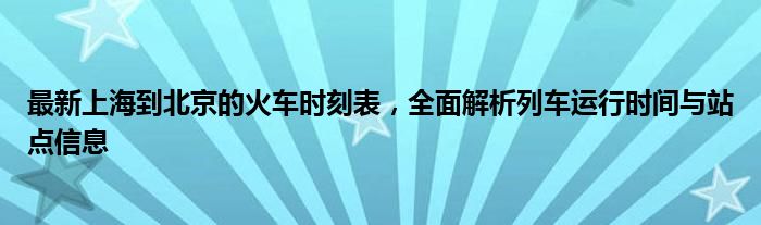 最新上海到北京的火车时刻表,全面解析列车运行时间与站点信息