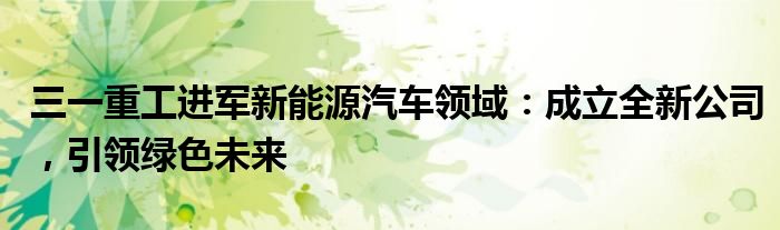 三一重工进军新能源汽车领域:成立全新公司,引领绿色未来