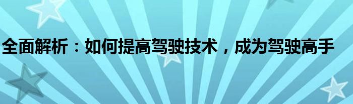 全面解析:如何提高驾驶技术,成为驾驶高手