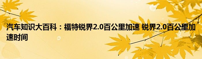 汽车知识大百科:福特锐界2.0百公里加速 锐界2.0百公里加速时间