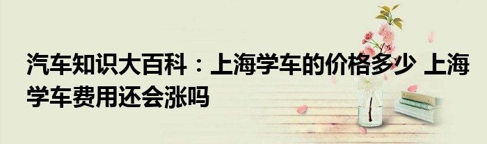 汽车知识大百科:上海学车的价格多少 上海学车费用还会涨吗