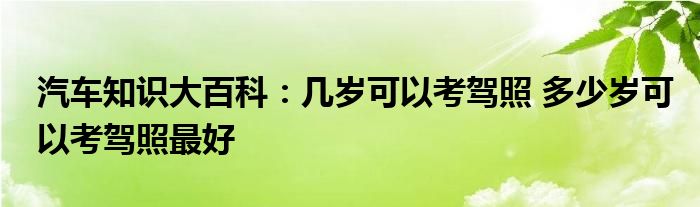 汽车知识大百科:几岁可以考驾照 多少岁可以考驾照最好