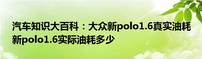 汽车知识大百科:大众新polo1.6真实油耗 新polo1.6实际油耗多少