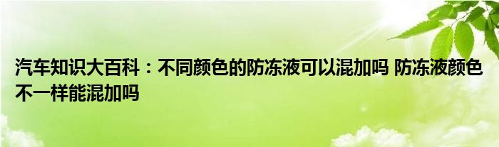 汽车知识大百科:不同颜色的防冻液可以混加吗 防冻液颜色不一样能混加吗