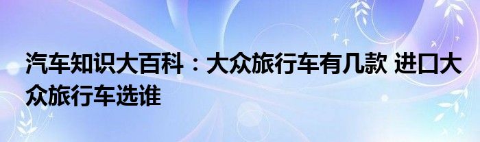 汽车知识大百科:大众旅行车有几款 进口大众旅行车选谁