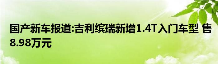 国产新车报道:吉利缤瑞新增1.4T入门车型 售8.98万元