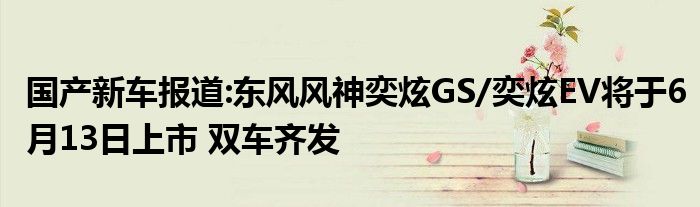 国产新车报道:东风风神奕炫GS/奕炫EV将于6月13日上市 双车齐发