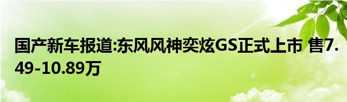 国产新车报道:东风风神奕炫GS正式上市 售7.49-10.89万