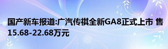 国产新车报道:广汽传祺全新GA8正式上市 售15.68-22.68万元
