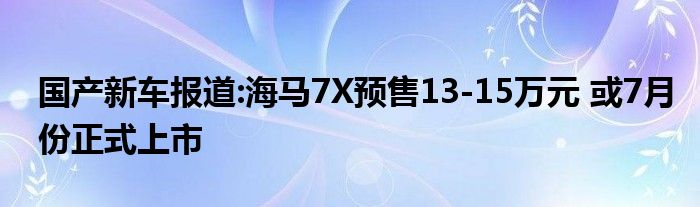 国产新车报道:海马7X预售13-15万元 或7月份正式上市