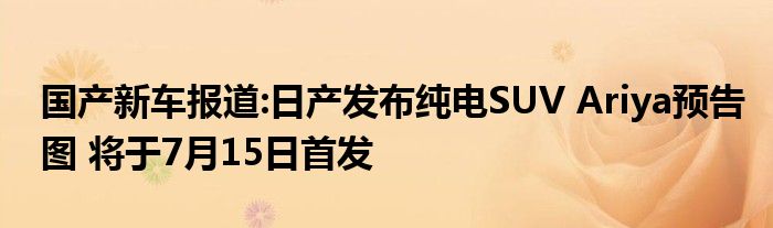 国产新车报道:日产发布纯电SUV Ariya预告图 将于7月15日首发