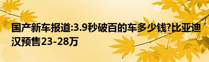 国产新车报道:3.9秒破百的车多少钱?比亚迪汉预售23-28万