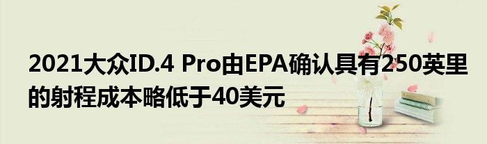 2021大众ID.4 Pro由EPA确认具有250英里的射程成本略低于40美元