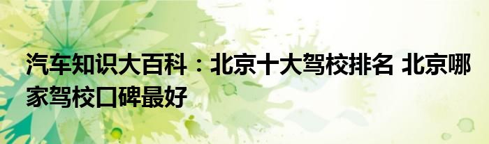 汽车知识大百科:北京十大驾校排名 北京哪家驾校口碑最好