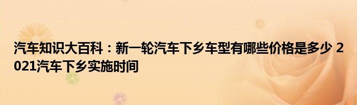 汽车知识大百科:新一轮汽车下乡车型有哪些价格是多少 2021汽车下乡实施时间