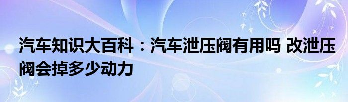 汽车知识大百科:汽车泄压阀有用吗 改泄压阀会掉多少动力
