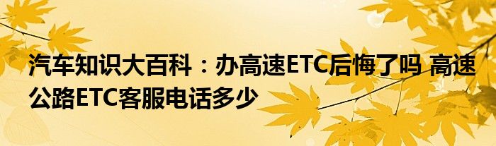 汽车知识大百科:办高速ETC后悔了吗 高速公路ETC客服电话多少