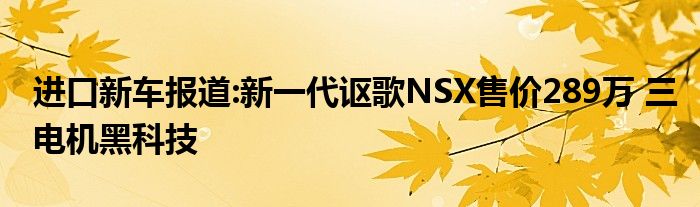 进口新车报道:新一代讴歌NSX售价289万 三电机黑科技