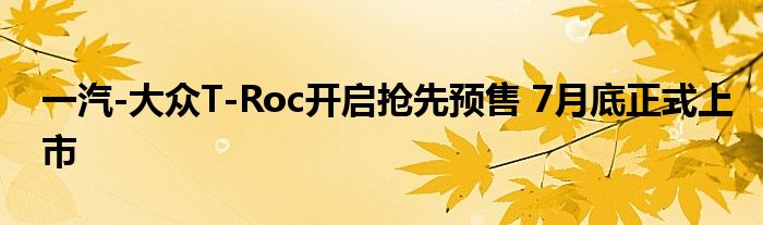 一汽-大众T-Roc开启抢先预售 7月底正式上市