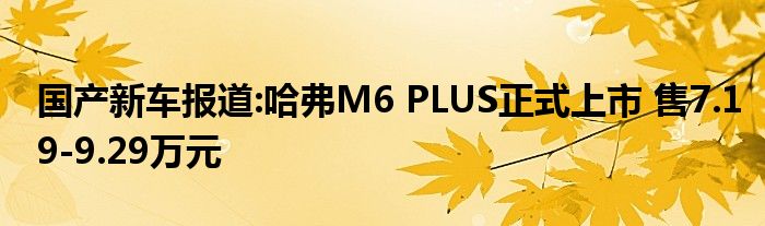 国产新车报道:哈弗M6 PLUS正式上市 售7.19-9.29万元