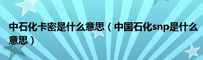 中石化卡密是什么意思(中国石化snp是什么意思)