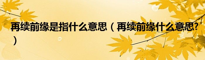 再续前缘 zàixùqián yuán,释义为两个人由于某种原因而缘分断了且分开了,一方或双方心中已然放下,可经过一段时间或几年后,二人又因某种原因而续上了缘分且又在一起了,三情中多指男女之间的爱情关系。